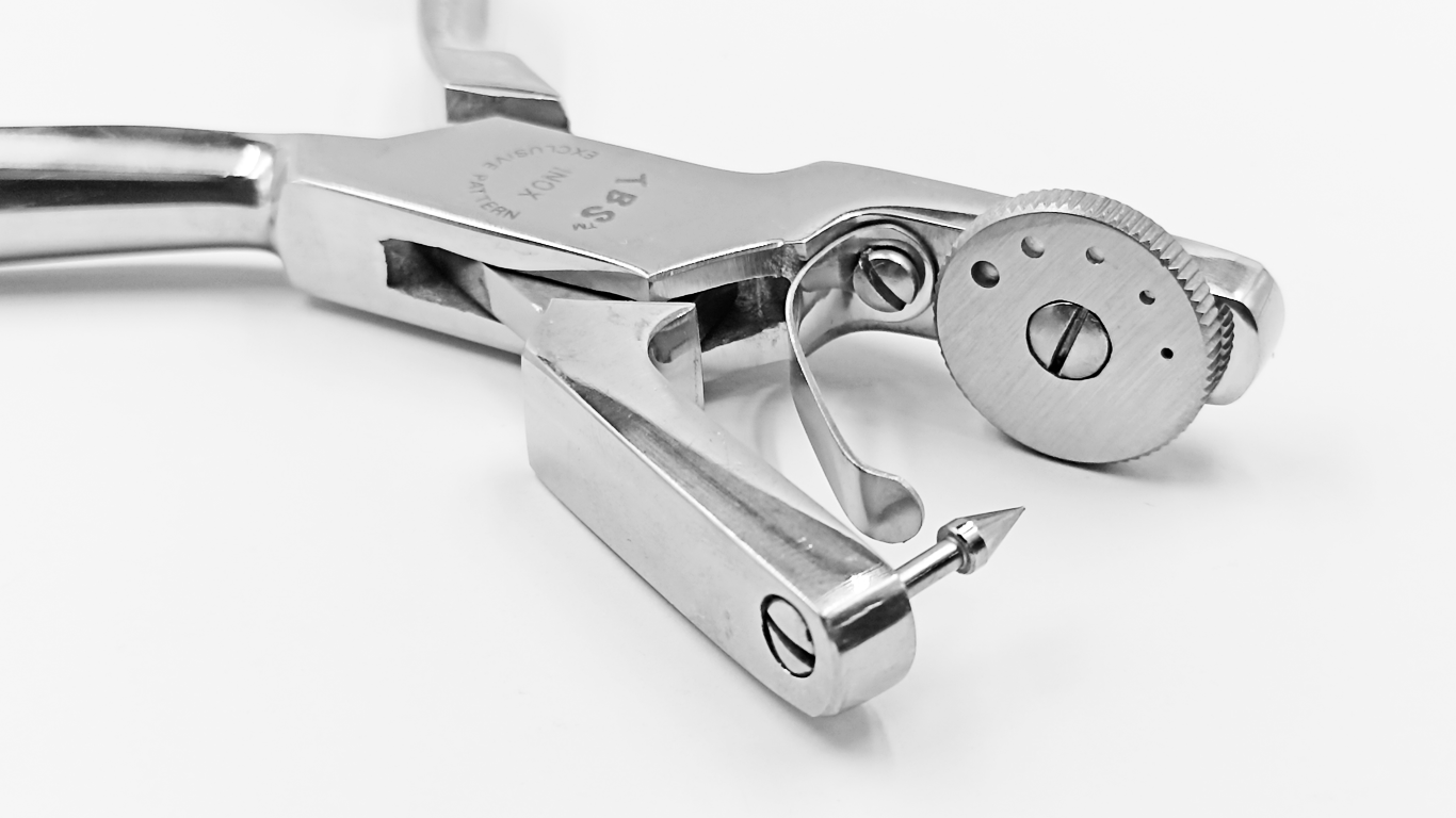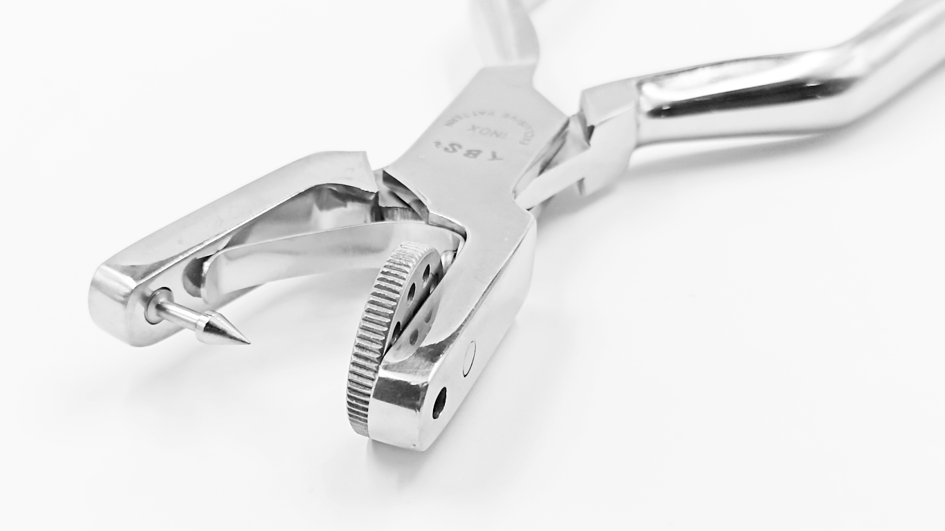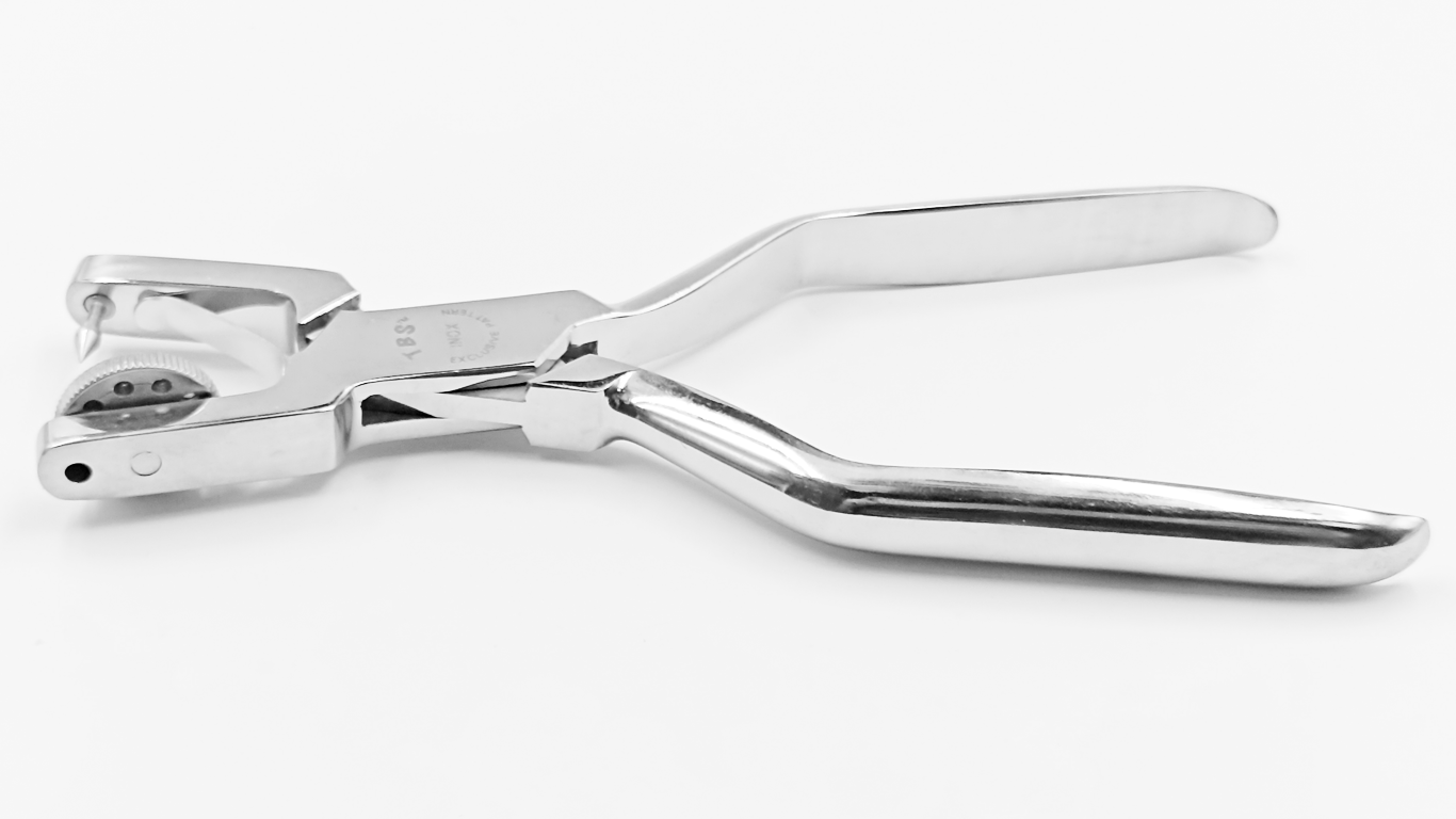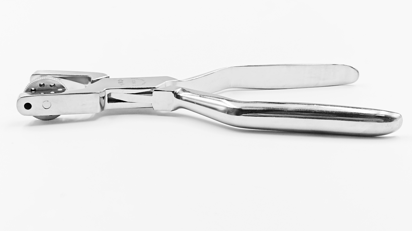 Para utilizar la perforadora de dique de hule Ivory, el dentista sostiene el mango de la herramienta y aplica una presión controlada sobre el dique de hule en el lugar donde desea hacer la perforación. Al presionar, la punta de la perforadora atraviesa el material de hule, creando un pequeño orificio que permite el paso de instrumentos dentales, como fórceps o exploradores, mientras se mantiene el dique en su lugar.