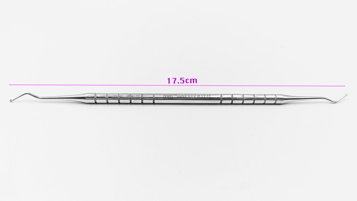 El excavador dental puede estar fabricado en acero inoxidable o tener una punta de carburo de tungsteno, que es un material más resistente y duradero. También puede estar revestido con un material antiadherente para facilitar la extracción de material dental