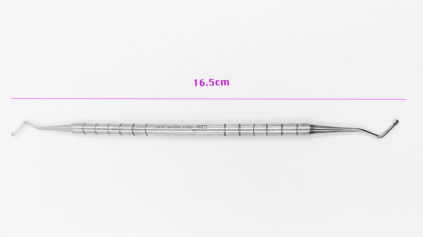El excavador dental es un instrumento utilizado en odontología para realizar cavidades en la dentina, poder detectar y eliminar caries y cálculos así como eliminar tejido desorganizado y extirpar la pulpa coronaria. El excavador dental es una herramienta utilizada en odontología para eliminar caries, preparar cavidades y limpiar la superficie de los dientes. Se compone de un mango ergonómico y una punta afilada en forma de gancho o cucharilla, diseñada para acceder a diferentes áreas de la boca.
