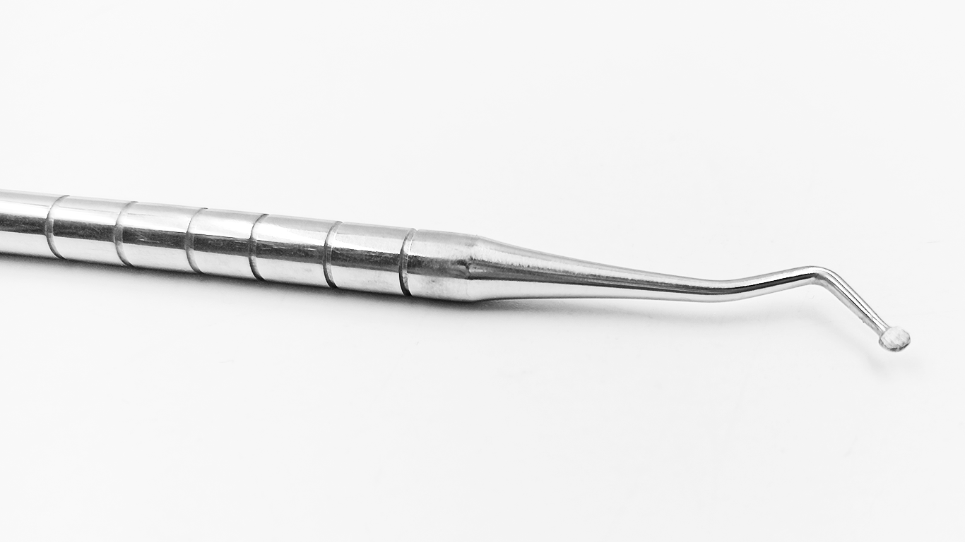 El excavador dental puede estar fabricado en acero inoxidable o tener una punta de carburo de tungsteno, que es un material más resistente y duradero. También puede estar revestido con un material antiadherente para facilitar la extracción de material dental