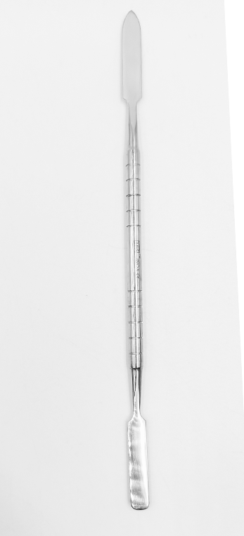 Las espátulas de cemento dental es un instrumental utilizado en odontología para la mezcla de materiales de cementado. Su función es conseguir una buena consistencia de la mezcla .Espátula diseñada para mezclar cementos odontológicos en loseta de vidrio. Esta espátula también esta indicada para aplicar materiales, separar matrices, introducir hilos de retracción u otros destinos como la mezcla de polisulfuros, siliconas y cementos
