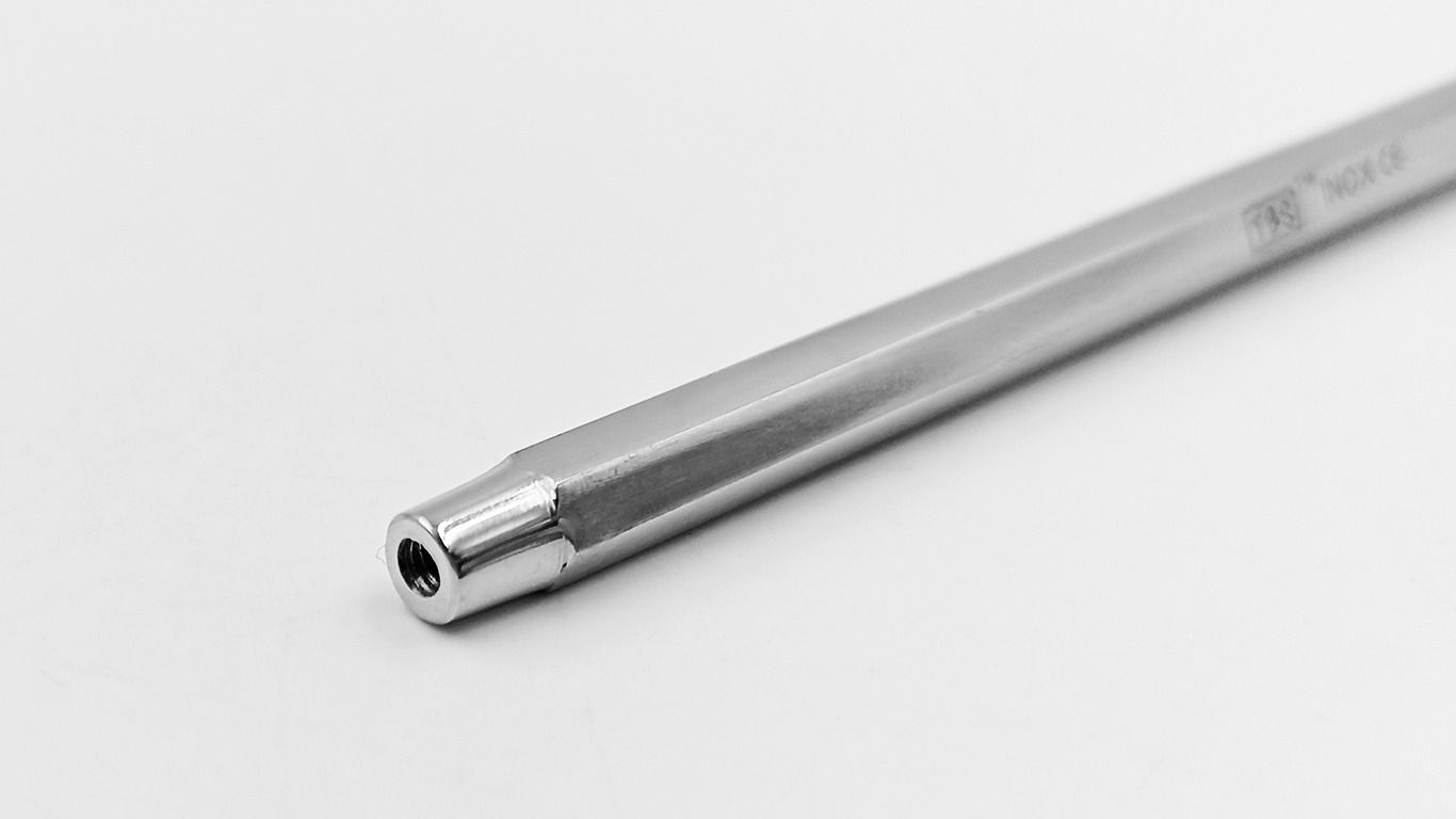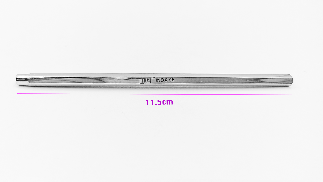 El mango hexagonal generalmente está hecho de acero inoxidable o algún otro material resistente y duradero. Su diseño hexagonal le brinda estabilidad y evita que el instrumento ruede o se deslice durante su uso.