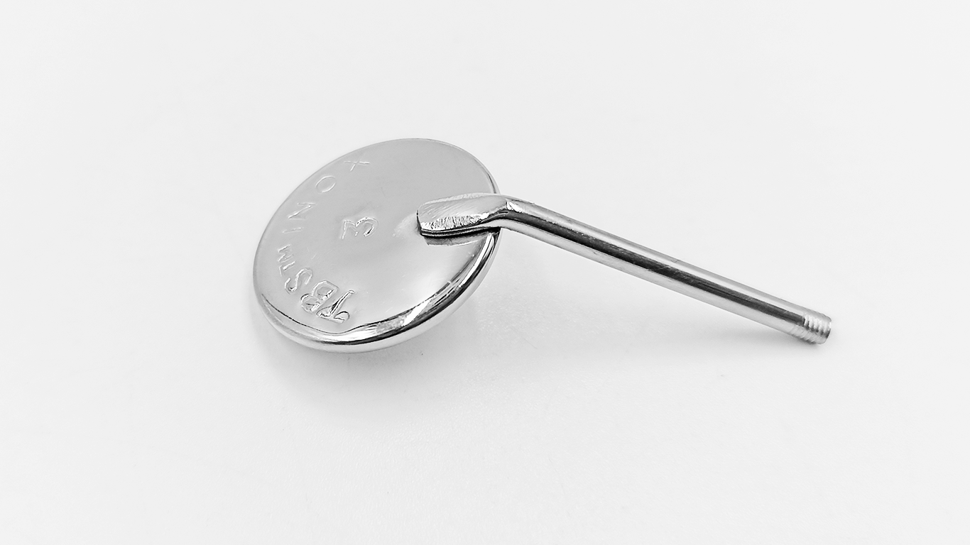 Un espejo dental infantil es una herramienta utilizada en odontología para permitir al dentista ver la parte posterior de los dientes y otras áreas difíciles de alcanzar en la boca del paciente. Consiste en un pequeño espejo plano montado en el extremo de un mango largo y delgado. El espejo puede tener diferentes tamaños y formas, y su superficie puede ser cóncava o convexa para adaptarse a diferentes ángulos de visualización. También puede tener un revestimiento de vapor de plata para reducir la formación de vapor de agua en la superficie del espejo y mejorar la claridad de la imagen.