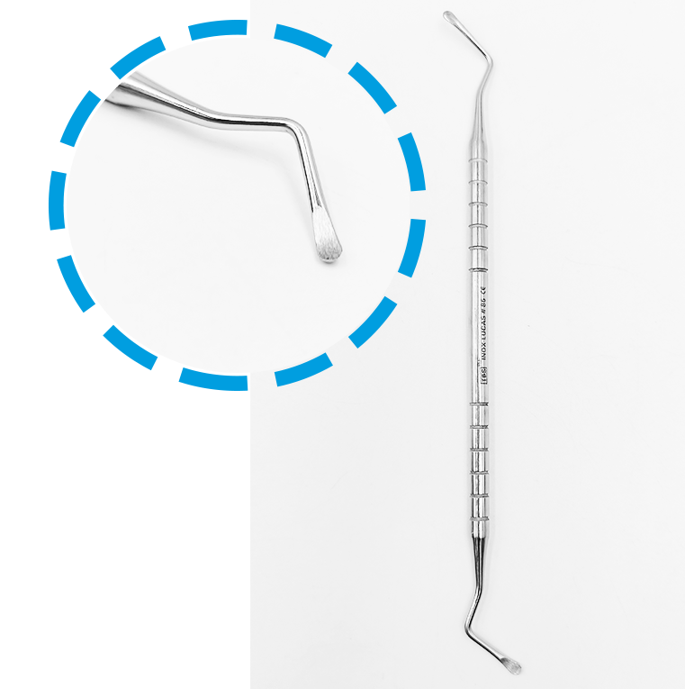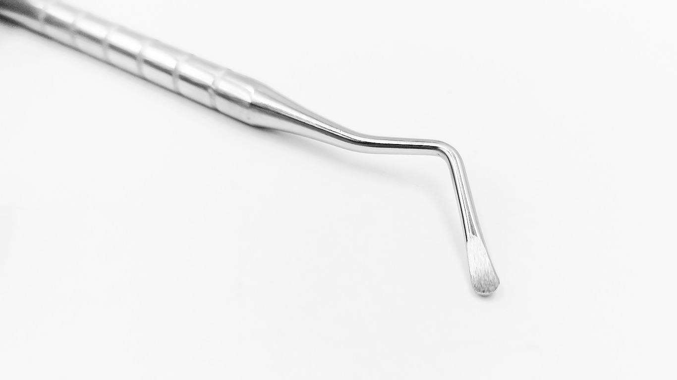 El instrumento se sostiene mediante un mango, que puede ser recto o curvo, brindando al cirujano un agarre firme y preciso. Dependiendo del tamaño y la forma del área a tratar, existen diferentes tipos de curetas, que varían en cuanto a la longitud del mango y el tamaño de la cucharilla o gancho en el extremo.