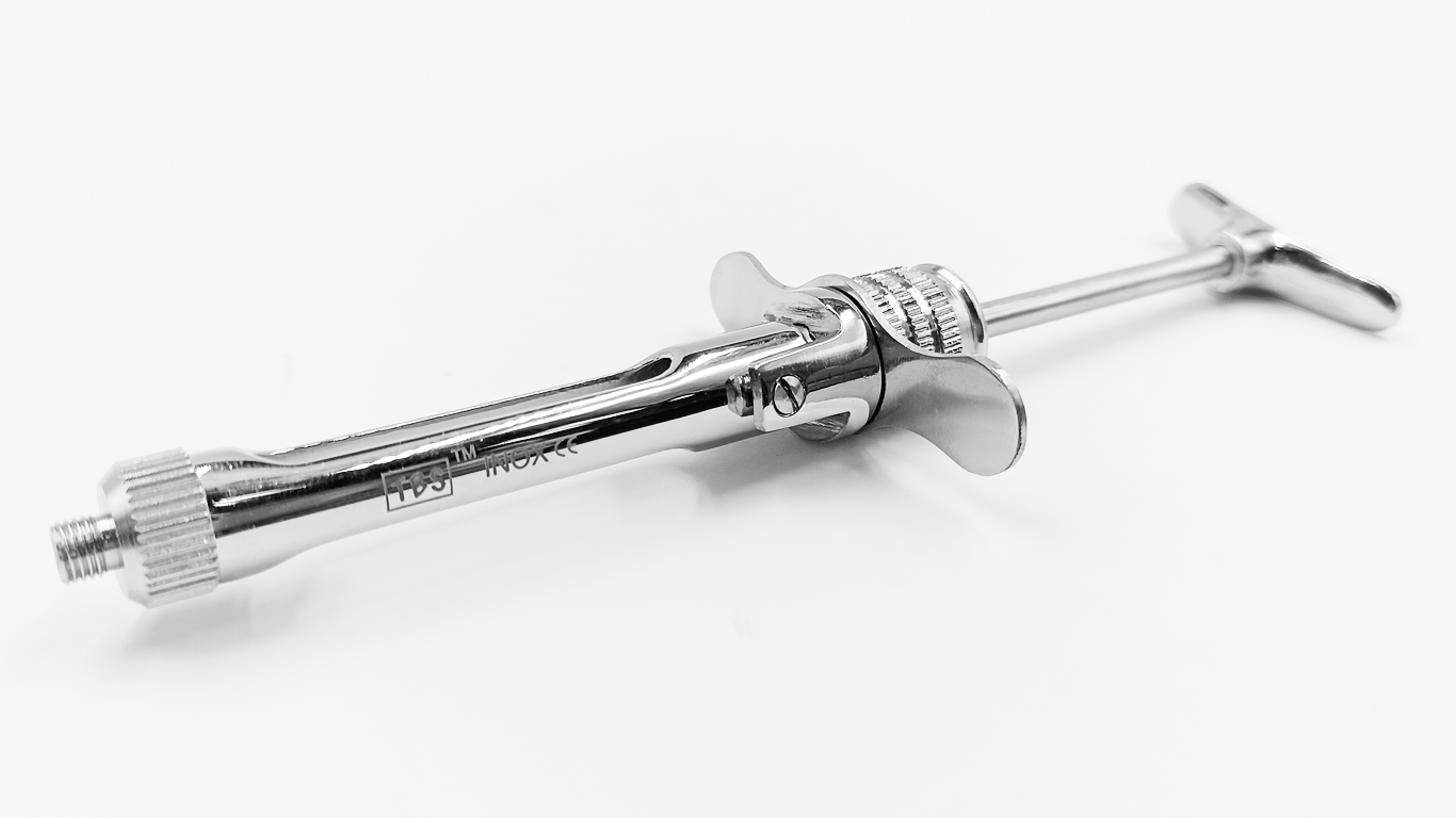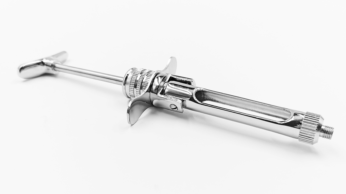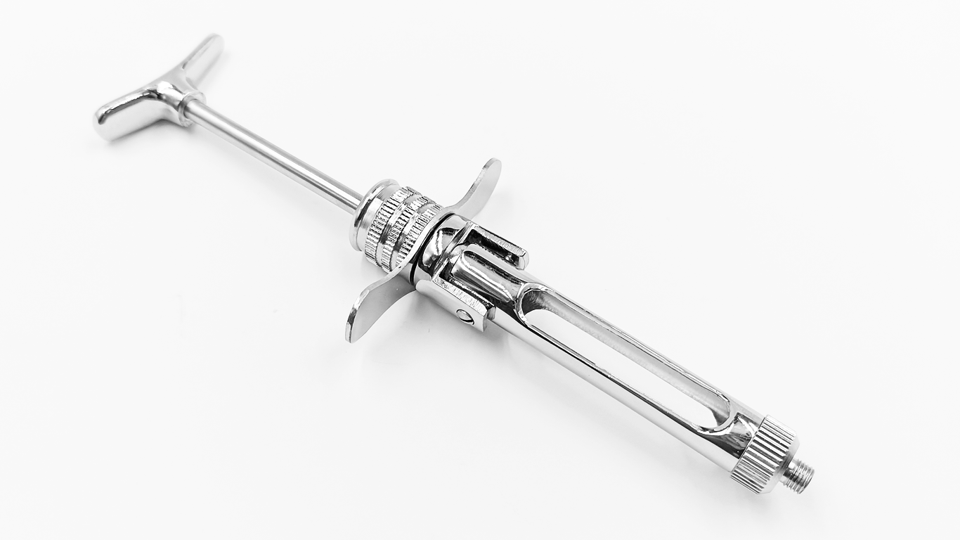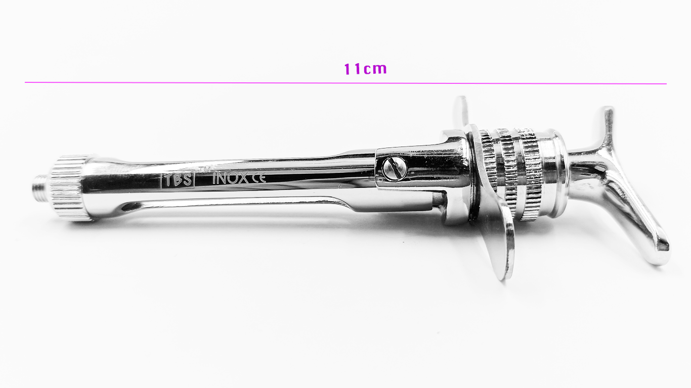 Una jeringa es un instrumento utilizado en odontología para administrar anestesia local de manera precisa y eficiente. Está diseñada para contener una pequeña cantidad de anestésico local La jeringa tiene una estructura similar a una jeringa convencional, pero cuenta con algunas características adicionales. En su extremo frontal, tiene una punta hueca o aguja y permitir que el anestésico local fluya. Alrededor de la aguja, hay un cilindro que contiene un émbolo que se desplaza hacia adelante y hacia atrás para administrar el líquido.