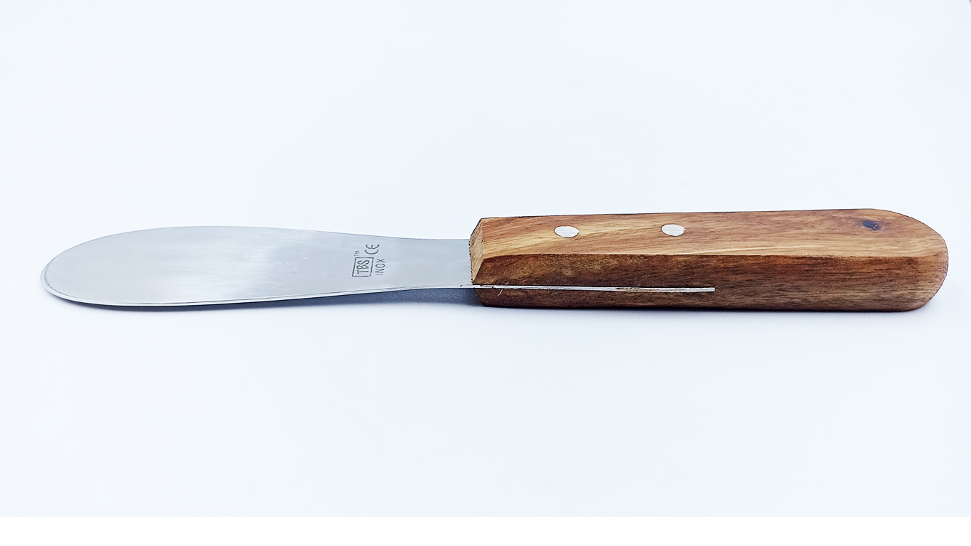 Espátula utilizada en odontología para mezclar alginato o yeso , se usa para el recorte y modelado de materiales como yeso o cera para la toma de impresiones